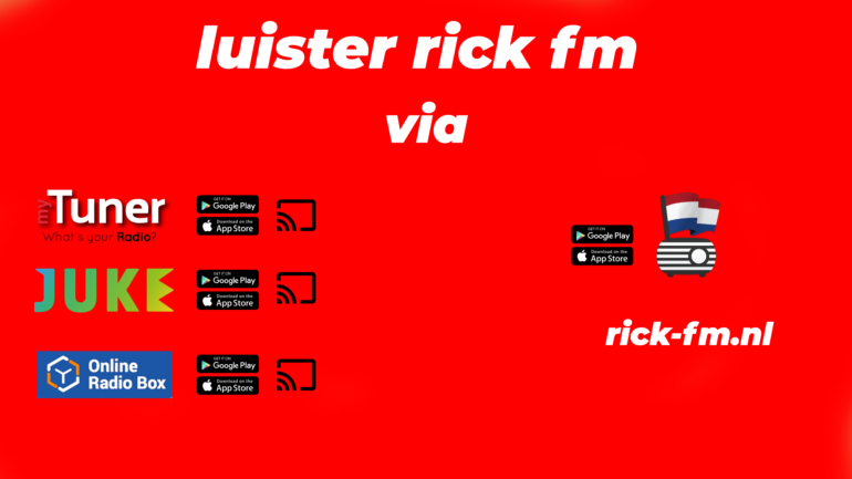 rick fm luisteren er zijn veel verschilende manieren om te luisteren naar rick fm hier onder een aantal mogelijkheden juke mytuner radioned onlineradiobox wij hopen nu dat je een goed overzicht hebt gekregen hoe en waar wij zijn te beluisteren.